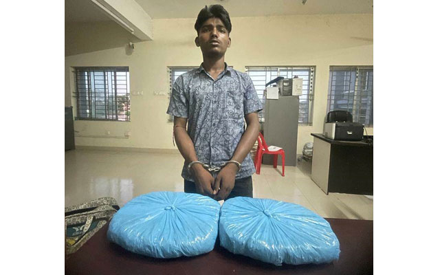 সংবাদের সুত্রধরে এসআই মামুন শেখ, এএসআই ইমানুর হোসেন, এএসআই ইশতিয়াক হোসেন সহ সঙ্গীয় ফোর্স নিয়ে পৌর শহরে অভিযান চালায় পুলিশের একটি দল। এসময় আলী হোসেন’র হাতে থাকা একটি ব্যাগে তল্লাশী চালিয়ে পলিথিনে মোড়ানো দুই কেজি গাজা উদ্ধার করা হয়।