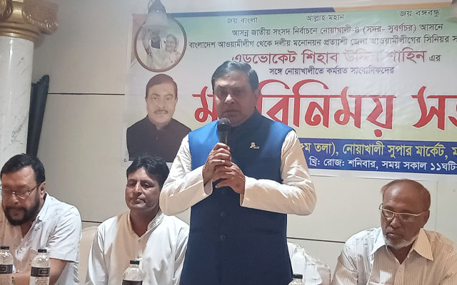 শনিবার (২৯ এপ্রিল) দুপুরে নোয়াখালী ফুডপেস্তা রেস্টুরেন্টে জেলায় কর্মরত প্রিন্ট, ইলেকট্রনিক ও অনলাইন মিডিয়ার সাংবাদিকদের সঙ্গে মতবিনিময় সভা করেন তিনি। এসময় নিজেকে আগামী জাতীয় সংসদ নির্বাচনে আওয়ামী লীগের দলীয় মনোনয়ন প্রার্থীতা প্রত্যাশা করেন এডভোকেট শিহাব উদ্দিন শাহিন।