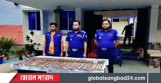 তাৎক্ষনিক অভিযান পরিচালনা করে উক্ত পুকুর হতে বস্তার মধ্যে হতে ৩৪ টি দেশীয় অস্ত্র ( হাসুয়া) উদ্ধার করা হয়।