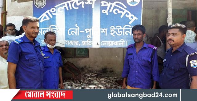 স রকারি নিষেধাজ্ঞা অমান্য করে মেঘনা নদীতে ইলিশ মাছ ধরার অপরাধে মঙ্গলবার ভোরে হাতিয়া উপজেলা মৎস্য বিভাগ ও নৌপুলিশ যৌথ অভিযান চালিয়ে নোয়াখালীর হাতিয়া উপজেলার ভাসানচর এলাকা থেকে ৫ টি ট্রলার সহ ২ টন ইলিশ মাছ ও জাল জব্দ করেছে। এসময় ওই ট্রলারের ৪৬ জন জেলে কে ও আটক করা হয়েছে।ঘটনাটি ঘটেছে মঙ্গলবার দুপুরে হাতিয়া উপজেলার নলচিরা নৌ ঘাটে। জানা গেছে, মঙ্গলবার(২১ অক্টোবর) রাত ১২ থেকে ভোর ৫টা পর্যন্ত উপজেলা মৎস্য কর্মকর্তা ফাহাদ হাসান ও নলচিরা নৌ-পুলিশ ফাঁড়ির ইনচার্জ আশীষ চন্দ্র সাহার নেতৃত্বে এ অভিযান পরিচালিত হয়।