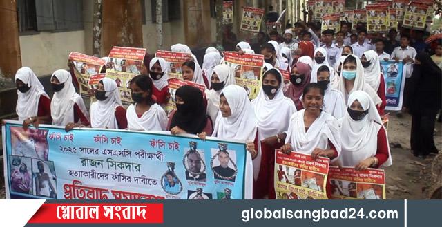 ন রসিংদীর রায়পুরায় এসএসসি পরীক্ষার্থী রাজন শিকদার হত্যা মামলার প্রধান আসামি ইউপি মেম্বার আশরাফুর রহমানসহ জড়িতদের গ্রেপ্তারের দাবিতে থানা প্রাঙ্গণে বিক্ষোভ করেছে নিহতের সহপাঠী, শিক্ষক ও পরিবারের সদস্যরা। রবিবার (৪ এপ্রিল) দুপুর ২টার দিকে রায়পুরা থানা প্রাঙ্গণে এ কর্মসূচী পালন করেন তারা।