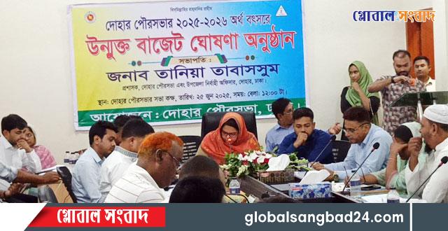 ঢা কার দোহার পৌরসভার ২০২৫-২৬ অর্থ বছরের বাজেট ঘোষণা করা হয়েছে। বুধবার বেলা ১২ টায় পৌরসভার হল রুমে পৌর প্রশাসক তানিয়া তাবাসসুম এর সভাপতিত্বে ৪৪ কোটি ৭৫ লক্ষ টাকার ২৭তম এই বাজেট ঘোষণা করা হয়। যার মধ্যে প্রস্তাবিত আয় ৪১ কোটি ৩২ লাখ টাকা।