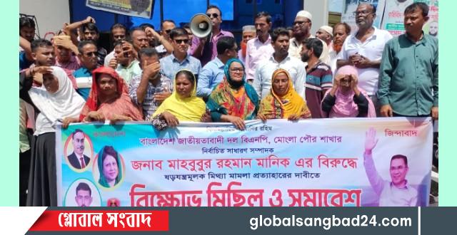 মোং লায় পৌর বিএনপির সাধারণ সম্পাদক মোঃ মাহবুবুর রহমান মানিকের বিরুদ্ধে দায়ের করা মিথ্যা মামলার প্রতিবাদে বিক্ষোভ মিছিল ও সমাবেশ অনুষ্ঠিত হয়েছে। শনিবার সকালে পৌর বিএনপি ও তার সহযোগী সংগঠনের আয়োজনে বের হওয়া এ প্রতিবাদ বিক্ষোভ মিছিল পৌর শহর প্রদক্ষিণ করে। পরে পৌর মার্কেট চত্বরে অনুষ্ঠিত হয় প্রতিবাদ সমাবেশ।
