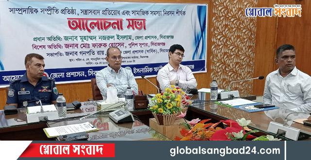 সিরাজগঞ্জে সাম্প্রদায়িক সম্প্রীতি প্রতিষ্ঠা, সন্ত্রাসবাদ প্রতিরোধ এবং সামাজিক সমস্যা নিরসন শীর্ষক আলোচনা সভা অনুষ্ঠিত হয়েছে।