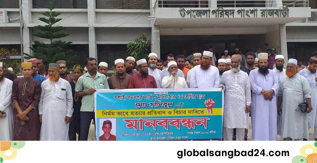 রাজবাড়ী জেলার পাংশা উপজেলার সমসপুর দাখিল মাদরাসার সপ্তম শ্রেণীর ছাত্র হাসিবুল হত্যার প্রতিবাদে এবং হত্যাকান্ডের সাথে জড়িতদের গ্রেফতার করে দৃষ্টান্তমূলক শাস্তির দাবীতে বৃহস্পতিবার (৮ জুন) পাংশা উপজেলা পরিষদ চত্বরে মানববন্ধন কর্মসূচি পালিত হয়েছে। পাংশা উপজেলার সকল মাদরাসার শিক্ষক কর্মচারী ও ছাত্র-ছাত্রীদের ব্যানারে সকাল ১০টা থেকে সকাল সাড়ে ১০টা পর্যন্ত আধাঘন্টা ব্যাপী মানববন্ধন কর্মসূচি পালিত হয়।