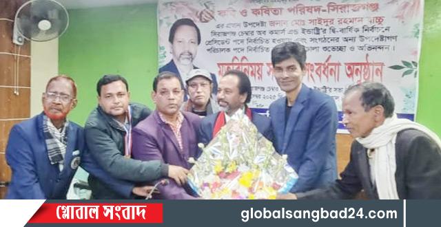 প্রধান উপদেষ্টা,সংবর্ধিত জনদের উত্তরীয় পরিধান করিয়ে ফুলেল শুভেচ্ছা ও অভিনন্দন জানানো হয়। এই সাহিত্য সংগঠনের আহবায়ক কবি ও সিনিয়র সাংবাদিক ঐতিহ্যবাহী সিরাজগঞ্জ প্রেসক্লাবের সম্মানিত সদস্য মো: আজিজুর রহমান মুন্না’র সভাপতিত্বে এবং সদস্য হুমায়ুন কবীর আফ্রিদির সঞ্চালনায়- সোমবার (২২ডিসেম্বর-২০২৫ খ্রিঃ) বিকেল সাড়ে ৫ টার দিকে, সিরাজগঞ্জ চেম্বার অব কমার্স অ্যান্ড ইন্ডাস্ট্রি’র হলরুমে- “কবি ও কবিতা পরিষদ সিরাজগঞ্জ” এঁর প্রধান উপদেষ্টা মোঃ সাইদুর রহমান বাচ্চু -সিরাজগঞ্জ চেম্বার অব কমার্স এন্ড ইন্ডাস্ট্রির প্রেসিডেন্ট তিনগুণ ভোটে বিজয়ী হওয়ায় তাকে এবং অন্য উপদেষ্টাগণদেরকে এবং কবি ও কবিতা পরিষদ- সিরাজগঞ্জ এঁর নতুন দু’জন উপদেষ্টাকে নিযুক্ত করা হয়। এরা হলেন- তানভীর মাহমুদ পলাশ এবং আনোয়ার হোসেন রাজেশ।