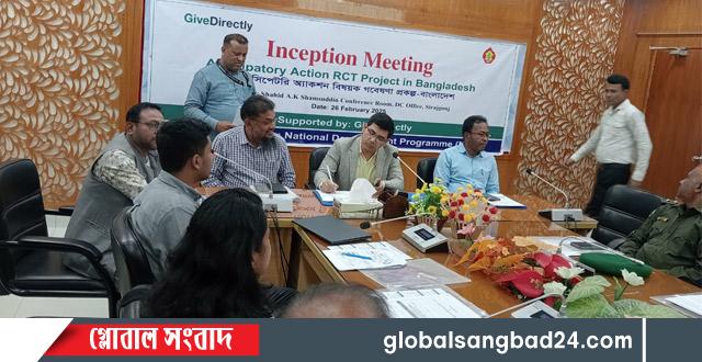সিরাজগঞ্জ জেলা প্রশাসক কার্যালয়ের শহীদ এ কে শামসুদ্দিন সম্মেলন কক্ষে অনুষ্ঠিত হলো , ন্যাশনাল ডেভেলপমেন্ট প্রোগ্রাম (NDP) ও GiveDirectly. যৌথভাবে একটি Anticipatory Action বিষয়ক গবেষণা প্রকল্প গ্রহণ সভা অনুষ্ঠিত। উক্ত প্রকল্পের আওতায়, যমুনা নদীর অববাহিকায় অবস্থিত চারটি জেলায় বন্যায় ঝুঁকিগ্রস্থ পরিবারকে বন্যার পূর্বে ও পরে আর্থিক সহায়তা প্রদান করা হবে।