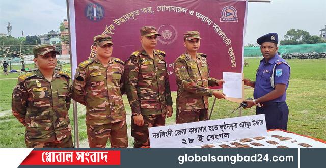 নরসিংদী জেলা কারাগার থেকে লুট হওয়া ৫৮২ রাউন্ড গোলাবারুদ উদ্ধার করেছে সেনাবাহিনী। নরসিংদী সদর উপজেলার চিনিশপুরে অভিযান চালিয়ে এসব গোলাবারুদ উদ্ধার করা হয়।