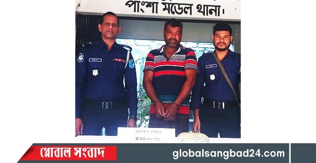 জানা যায়, গোপন সংবাদের ভিত্তিতে পাংশা মডেল থানার অফিসার ইনচার্জ (ওসি) মোহাম্মদ সালাউদ্দিনের নেতৃত্বে এসআই সাজিদ আহমেদসহ সঙ্গীয় পুলিশ বুধবার দুপুর ১টা ১০ মিনিটের সময় পাংশা আজিজ সরদার বাসস্ট্যান্ডের বিসমিল্লাহ নামক হোটেলের সামনে থেকে ৫শ’ গ্রাম গাঁজাসহ লোকমান বিশ্বাসকে গ্রেফতার করে।