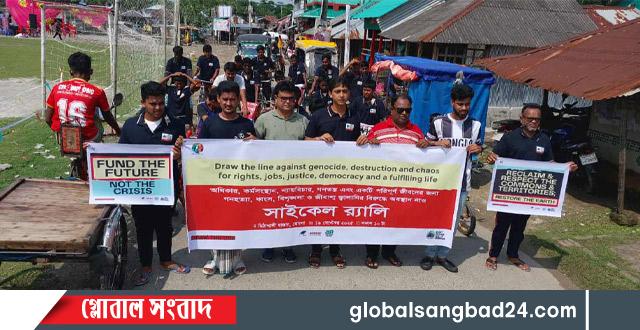 ধিকার, কর্মসংস্থান, ন্যায় বিচার এবং পরিপূর্ণ জীবনের জন্য গনহত্যা-ধ্বংস-বিশৃংখলা ও জীবাশ্ম জ্বালানির বিরুদ্ধে অবস্থান নেয়ার আহ্বান জানিয়ে মোংলায় সাইকেল র‍্যালি হয়েছে।