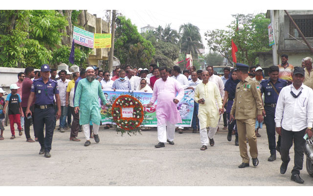 শুক্রবার (১৭ মার্চ) সকাল ১১টায় একটি আনন্দ শোভাযাত্রার র্যালী বের হয় আ'লীগের দলীয় কার্যলয় থেকে। র্যালীটি শহরের প্রধান সড়ক প্রদক্ষিন শেষে আ'লীগের দলীয় কার্যালয়ে উপজেলা আওয়ামী লীগের সভাপতি বাবু সুনীল কুমার বিশ্বাস'র সভাপতিত্বে উপমন্ত্রী বেগম হাবিবুন নাহার, উপজেলা চেয়ারম্যান আবু তাহের হাওলাদার,