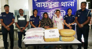 বিস্তারিত »রায়পুরায় ২০ কেজি গাঁজাসহ ২ নারী আটক