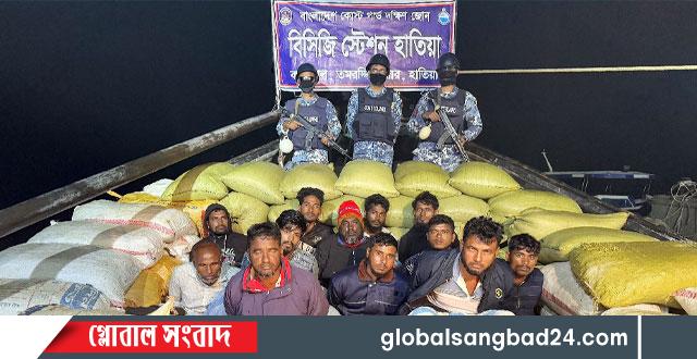 ঘটনাটি ঘটেছে বুধবার (১০ ডিসেম্বর ) ভোরে নোয়াখালীর হাতিয়া উপজেলার বয়ারচর সংলগ্ন মেঘনা নদীতে। বাংলাদেশ কোস্ট গার্ড দক্ষিণ জোনের মিডিয়া কর্মকর্তা লেফটেন্যান্ট কমান্ডার সিয়াম-উল-হক বুধবার বিকেলে (১০ ডিসেম্বর ) গণমাধ্যমকে এই তথ্য নিশ্চিত করেন। তিনি বলেন, গোপন সূত্রে খবর পেয়ে বুধবার ভোরে কোস্ট গার্ড স্টেশন হাতিয়া কর্তৃক নোয়াখালীর হাতিয়া উপজেলার বয়ারচর সংলগ্ন মেঘনা নদীতে একটি বিশেষ অভিযান পরিচালনা করা হয়। অভিযান চলাকালীন উক্ত এলাকায় সন্দেহজনক একটি বোটে তল্লাশি চালিয়ে মাদকের বিনিময়ে অবৈধভাবে শুল্ক-কর ফাঁকি দিয়ে মায়ানমারে পাচারের উদ্দেশ্যে বহন কৃত প্রায় ৩১ লক্ষ ৩৪ হাজার টাকা মূল্যের ২৩৩ বস্তা হলুদ , ৩২ বস্তা মাস কলাই ডাল, ৩২ বস্তা কাঠ বাদাম ও পাচার কাজে ব্যবহৃত একটি ট্রলার সহ ১২ জন পাচার কারী কে আটক করা হয়। তিনি আরো জানান, জব্দকৃত পণ্য , পাচার কাজে ব্যবহৃত ট্রলার ও আটককৃত পাচারকারীদের বিষয়ে আইনানুগ ব্যবস্থা গ্রহণ করা হয়েছে ।
