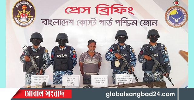 অভিযানের সময় কোস্টগার্ডের উপস্থিতি টের পেয়ে অস্ত্র ব্যবসায়ী বনের ভিতর পালানোর চেষ্টা করলে আভিযানিক দল ধাওয়া করে এক টি একনলা বন্দুকসহ দুর্ধর্ষ সন্ত্রাসী, মানব পাচারকারী এবং ভারত থেকে অস্ত্র ও মাদক চোরাচালানকারী মামুন কয়ালকে আটক করে।