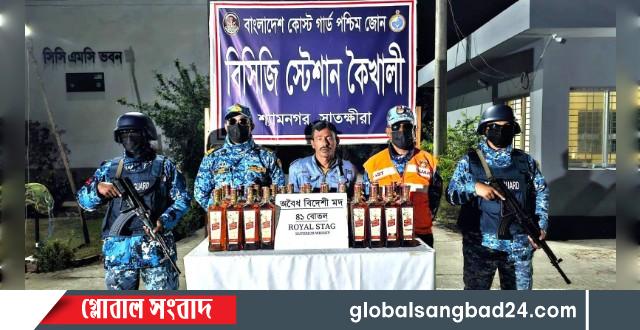 শ্যামনগরে কোস্ট গার্ডের অভিযানে প্রায় ২ লক্ষ টাকা মূল্যের ৪১ বোতল বিদেশি মদসহ মাদক কারবারি আটক
