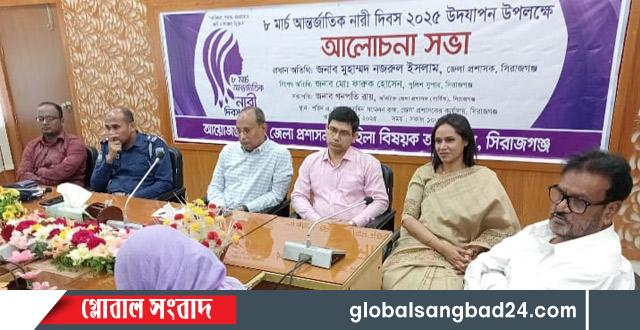 অধিকার- সমতা- ক্ষমতায়ন নারী ও কন্যার উন্নয়ন ; এই প্রতিপাদ্যকে সামনে রেখে সিরাজগঞ্জে উদযাপিত হলো ৮ ই, মার্চ -২০২৫.আন্তর্জাতিক নারী দিবস উপলক্ষে রেলি ও আলোচনা সভা। সকাল ১০, ঘটিকায় জেলা প্রশাসকের কার্যালয়ে প্রথমে পতাকা উত্তোলন এবং রং বেরঙ্গের বেলুন উড়িয়ে অনুষ্ঠানের শুভ উদ্বোধন করেন প্রধান অতিথি জেলা প্রশাসক মোহাম্মদ নজরুল ইসলাম মহোদয়।