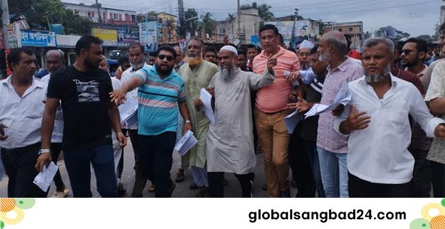 আগামী ১৪ জুলাই পদযাত্রা সফল করতে নোয়াখালীল জেলা শহর মাইজদীতে লিফলেট বিতরণ করেছে বিএনপি।