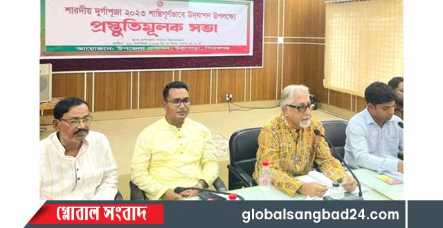 যথাযোগ্য মর্যাদা ও নির্বিঘেœ দুর্গাপূজা উদযাপন করতে পারে সেই লক্ষ্যে আজ সোমবার (১৬/১০/২০২৩) উপজেলা পরিষদ হলরুমে এক আলোচনা সভা অনুষ্ঠিত হয়েছে।
