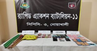 ॥সাদ্দাম উদ্দিন (রাজ), নরসিংদী জেলা প্রতিনিধি ॥ নরসিংদীর পলাশে তিন বছরের শিশু মাইশার লাশ উদ্ধার করেছেন র্যাপিড এ্যাকশন ব্যাটেলিয়ান (র্যাব-১১) নরসিংদী। এসময় ৩ জনকে আটক করেছেন র্যাব। আটকৃতরা হলেন, কুষ্টিয়ার কুমারখালী এলাকার জালাল শেখ (৪৮), তার স্ত্রী মাহফুজা (৩৯) ও ছেলে বিল্লাল শেখ (২০)। তাছাড়া নবনির্বাচিত উপজেলা কৃষকলীগ আহবায়ক …