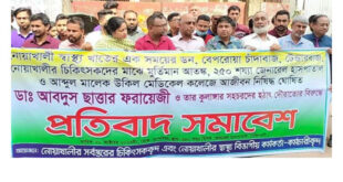 নোয়াখালীতে ডা. ফরায়েজির বিরুদ্ধে মানববন্ধন, প্রতিবাদ সমাবেশ