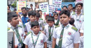 ॥ মনিরুজ্জামান মনি, সাতক্ষীরা জেলা প্রতিনিধি ॥ সী মান্তবর্তী এলাকায় মানব পাচার প্রতিরোধ ও জনসচেতনতা বৃদ্ধির লক্ষ্যে সাতক্ষীরা ব্যাটালিয়ন (৩৩ বিজিবি) এর উদ্যোগে বিশেষ মতবিনিময় ও জনসচেতনতামূলক সভা অনুষ্ঠিত হয়েছে। মঙ্গলবার (২৯ জুলাই) বিকেলে সাতক্ষীরা ব্যাটালিয়নের অধীনস্থ বৈকারী বিওপি কর্তৃক ছয়ঘরিয়া এলাকায় এবং কালিয়ানী বিওপি কর্তৃক কাথন্ডা বাজার এলাকায় এ …