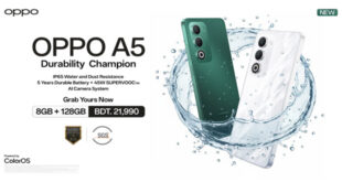 ॥ নিজস্ব প্রতিনিধি ॥ বি শ্বের শীর্ষস্থানীয় প্রযুক্তি ব্র্যান্ড অপো তাদের আল্টিমেট ডিউরেবিলিটি চ্যাম্পিয়ন স্মার্টফোন অপো এ৫ এর নতুন ৮ জিবি + ১২৮ জিবি ভ্যারিয়েন্ট বাংলাদেশে নিয়ে এসেছে। ক্ষতি ছাড়াই ৫ বছর পর্যন্ত কর্মক্ষম থাকতে সক্ষম। এতে রয়েছে ৬০০০ মিলিঅ্যাম্পিয়ারের সুবিশাল ব্যাটারি ও ৪৫ ওয়াট সুপারভুক ফ্ল্যাশ চার্জ প্রযুক্তি; যা …