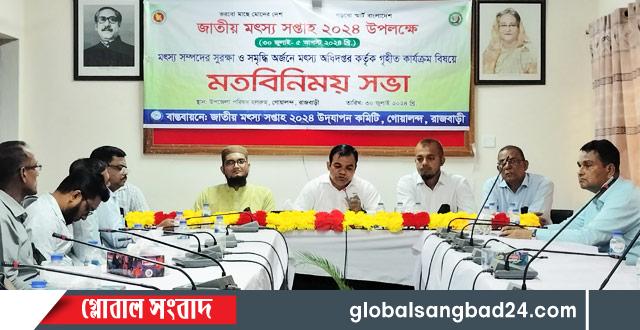“ভরবো মাছে মোদের দেশ, গড়বো স্মার্ট বাংলাদেশ” এ প্রতিপাদ্যে জাতীয় মৎস্য সপ্তাহ উদযাপন উপলক্ষে মৎস্য সম্পদের সুরক্ষা ও সমৃদ্ধি অর্জনে মৎস্য অধিদপ্তর কর্তৃক গৃহীত কার্যক্রম বিষয়ে রাজবাড়ী জেলার গোয়ালন্দ উপজেলা পরিষদের সভাকক্ষে জাতীয় মৎস্য সপ্তাহ ২০২৪ উদযাপন কমিটির আয়োজনে মঙ্গলবার (৩০ জুলাই) বেলা ১১ টার দিকে মতবিনিময় সভা অনুষ্ঠিত হয়েছে।