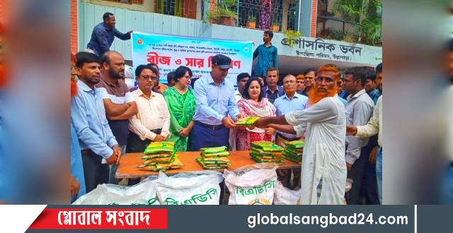 উপজেলা কৃষি কর্মকর্তা সুবর্ণা ইয়াসমিন সুমির সভাপতিত্বে উপজেলা নির্বাহী কর্মকর্তা আবু সালেহ মোহাম্মদ হাসনাত প্রধান অতিথি হয়ে ক্ষুদ্র ও প্রান্তিক কৃষকদের মাঝে বীজ ও সার বিতরণ করেন।