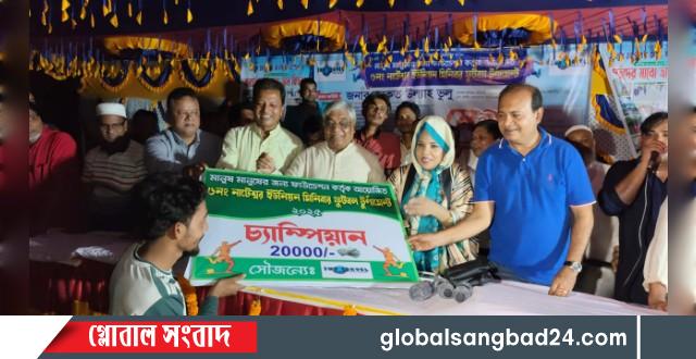 সোমবার (১৩ অক্টোবর) বিকেলে নোয়াখালীর সোনাইমুড়ী উপজেলার ৬নং নটেশ্বর ইউনিয়নের ঘোষকামতা সরকারি প্রাথমিক বিদ্যালয়ের মাঠে আয়োজিত ফাইনালে বিজয়ী দলের হাতে নগদ অর্থ ও ট্রফি তুলে দেয় অতিথিরা।