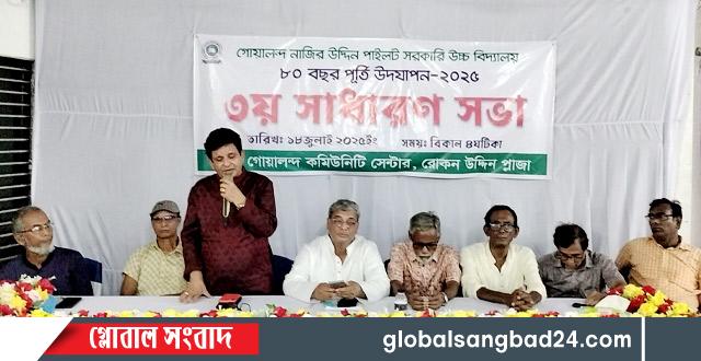 রা জবাড়ীর ঐতিহ্যবাহী শিক্ষা প্রতিষ্ঠান গোয়ালন্দ নাজির উদ্দিন সরকারী পাইলট উচ্চ বিদ্যালয় প্রতিষ্ঠার ৮০ বছর উদযাপন উপলক্ষে তৃতীয় সাধারণ সভা অনুষ্ঠিত হয়েছে।