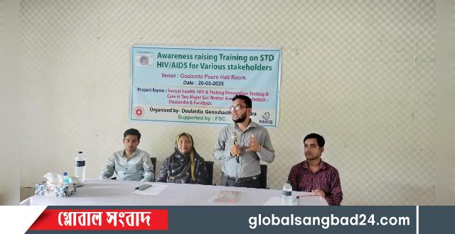 রা জবাড়ীর গোয়ালন্দে বিভিন্ন স্টেকহোল্ডারদের জন্য এইচ আইভি এইডস্ সর্স্পকে সচেতনতা বৃদ্ধিতে এক দিনের প্রশিক্ষণ অনুষ্ঠিত হয়েছে।