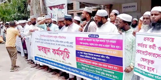 এ প্রকল্পের মাধ্যমে মসজিদের ইমাম, মুয়াজ্জিন, আলেম ওলামা ও সাধারণ শিক্ষায় শিক্ষিত বেকার নারী ও পুরুষের দারিদ্র্যতা দূরীকরণ ও কর্মসংস্থানের সুযোগ সৃষ্টি হয়েছে। কিন্ত অত্যন্ত দুঃখের সাথে বলতে চাই যে ইসলামিক ফাউণ্ডেশন কর্তৃক পরিচালিত নৈতিকতা ও ধর্মীয় মূল্যবোধ উন্নয়নে মসজিদ ভিওিক শিশু ও গণশিক্ষা কার্যক্রম ( ৮ম পর্যায়ে) প্রকল্প দুুত অনুমোদন ও জানুয়ারি ২০২৫ হতে বকেয়া বেতন – ভাতা পবিত্র ঈদুল আযহা পূর্বেই ঈদ বোনাস প্রদানসহ ০৫ দফা দাবি দ্রুত বাস্তবায়নের আহব্বান জানান। অন্যথায় পরবর্তীতে আরো বৃহৎ আন্দোলনের হুঁশিয়ারি দেন।