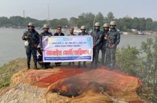 মোংলায় অবৈধ জাল পুড়িয়ে ধ্বংস