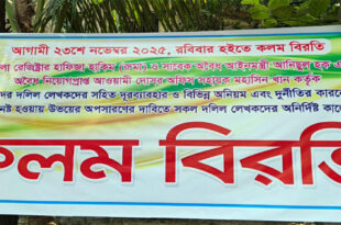 বিস্তারিত »সাতক্ষীরা জেলা রেজিস্ট্রার ও দূর্ণীতিবাজ অফিস সহায়ক মহাসিনের বদলির দাবীতে রেজিস্ট্রী কার্যক্রম বন্ধ রাখার ঘোষণা দলিল লেখক সমিতির।