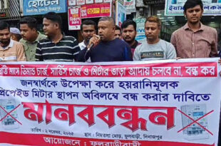 বিস্তারিত »দিনাজপুরে NESCO এর প্রিপেইড মিটার স্থাপন বন্ধ ও প্রকল্প বাতিলের দাবীতে মানববন্ধন ও স্বারকলিপি প্রদান।
