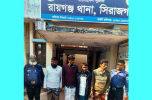 ॥ মোঃ মাসুদ রানা, রায়গঞ্জ (সিরাজগঞ্জ) প্রতিনিধি ॥ সি রাজগঞ্জের রায়গঞ্জ উপজেলায় গাঁজা সেবনের অভিযোগে চার …