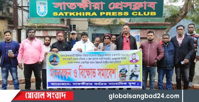 সাতক্ষীরায় সাংবাদিকদের উপর সন্ত্রাসী হামলা ও সিনিয়র সাংবাদিককে নিগৃহীত করার প্রতিবাদে মানববন্ধন ও বিক্ষোভ সমাবেশ অনুষ্ঠিত হয়েছে। শনিবার (২১ ডিসেম্বর) বেলা ১২ টায় সাতক্ষীরা প্রেস ক্লাবের সামনে কর্মরত সাংবাদিকদের আয়োজিত মানববন্ধন ও বিক্ষোভ সমাবেশে অনুষ্ঠিত হয়।