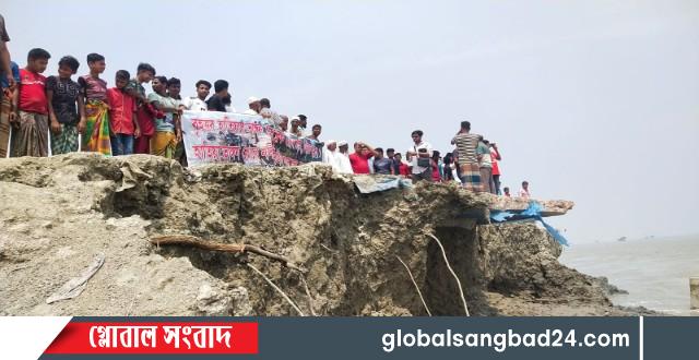হা তিয়ার বাংলা বাজার সংলগ্ন এলাকায় নদী ভাঙ্গন রোধের দাবিতে মানববন্ধন করেছেন চর ঈশ্বর ইউনিয়নের বাংলাবাজারের সর্বস্তরের জনগণ।