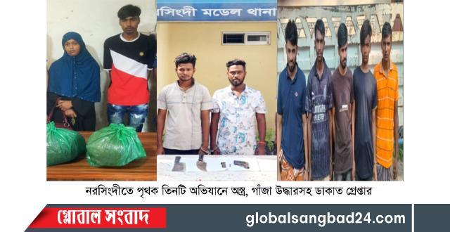 নরসিংদীতে পৃথক ৩টি অভিযানে অস্ত্র, গাঁজা উদ্ধারসহ ডাকাত গ্রেপ্তার