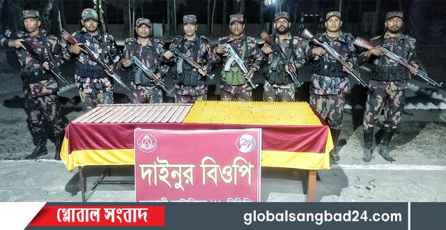 মঙ্গলবার ১৭ ফেব্রুয়ারি দিবাগত গভীর রাতে ফুলবাড়ী ব্যাটালিয়ন ২৯ বিজিবি’র অধীনাস্থ দাইনুর বিওপির একটি নিয়মিত অভিযানিক দল সীমান্তবর্তী এলাকায় চোরাচালান প্রতিরোধ অভিযান পরিচালনা করে ১ হাজার পিস ভারতীয় নেশাজাতীয় ইনজেকশন ও ৫ হাজার ৮শত৭০ পিস ভারতীয় মাদক নেশাজাতীয় ট্যাবলেট আটক করে আটককৃত মাদকদ্রব্যের আনুমানিক মূল্য ৬ লক্ষ ১৯ হাজার ৬ শত টাকা।