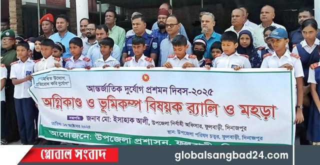 দি নাজপুরের ফুলবাড়ীতে উপজেলা প্রশাসনের আয়োজনে আন্তর্জাতিক দুর্যোগ ও প্রশমন দিবস ২০২৫ উদযাপন উপলক্ষ্যে অগ্নিকাণ্ড ও ভূমিকম্প বিষয়ক মহড়া প্রদর্শন ও আলোচনা করা হয়েছে।