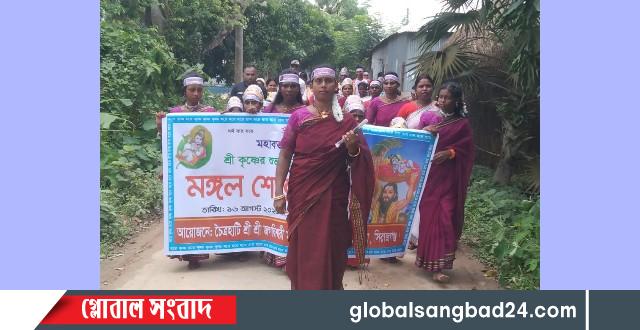 সি রাজগঞ্জের উল্লাপাড়া উপজেলার রামকৃষ্ণপুর ইউনিয়নের চৈত্রহাটিতে শ্রীকৃষ্ণের শুভ জন্মাষ্টমী উপলক্ষে বর্ণাঢ্য আনন্দ র্যালির আয়োজন করা হয়। শনিবার (১৬ আগস্ট ২০২৫) সকাল ১০টায় আদিবাসী পাড়ার তাপস চন্দ্র মুড়ারীর বাসা থেকে র্যালিটি যাত্রা শুরু করে।