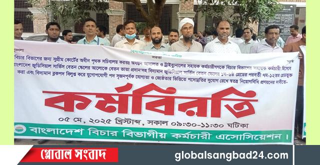 বাং লাদেশ বিচার বিভাগীয় কর্মচারী এসোসিয়েশন কর্তৃক ঘোষিত কর্মসূচির অংশ হিসেবে নোয়াখালী জেলা শাখার উদ্যোগে ২ ঘন্টা কর্মবিরতি পালন করা হয়।