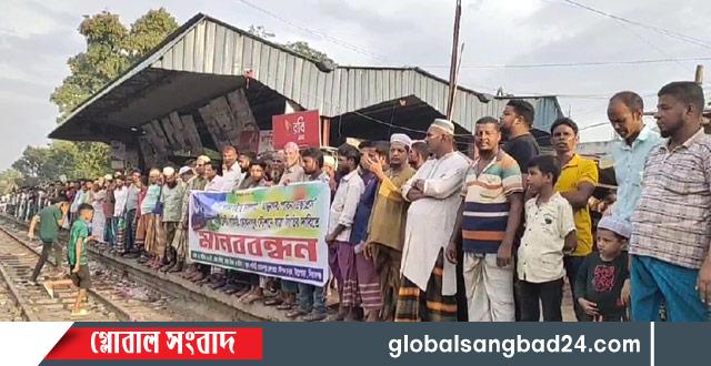 লাহিড়ী মোহনপুর রেলস্টেশনে পাবনা এক্সপ্রেস ট্রেনের যাত্রা বিরতি চেয়ে এলাকাবাসীর মানববন্ধন
