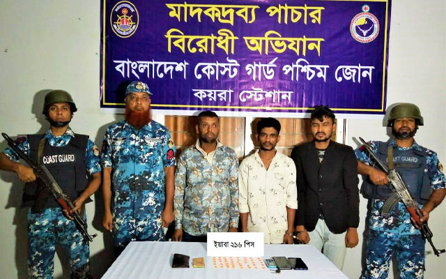মোংলা কোস্টগার্ড পশ্চিম জোনের অভিযান ইয়াবা সহ আটক তিন
