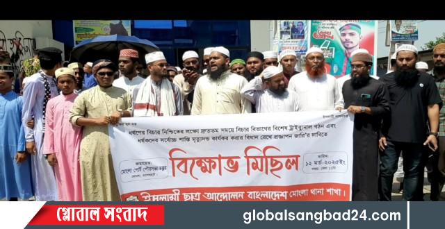 বুধবার (১২ মার্চ) দুপুরে ইসলামী ছাত্র আন্দোলন মোংলা থানা শাখার ব্যানারে শহরের প্রধান সড়ক প্রদক্ষিণ করে পৌর মার্কেটের সামনে বিক্ষোভ কর্মসূচি পালন করে তারা।