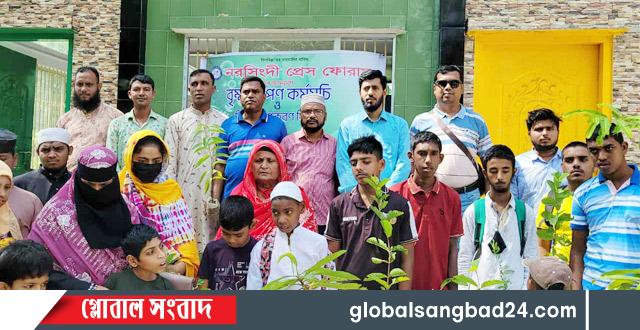 বৃক্ষরোপণ ও শিক্ষা উপকরণ বিতরণে নরসিংদী প্রেস ফোরাম