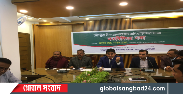 বৃহস্পতিবার (১২ ডিসেম্বর ) বিকালে উপজেলা পরিষদ সম্মেলন কক্ষে উপজেলা প্রশাসন কর্তৃক আয়োজিত রায়পুরায় কর্মরত ইলেকট্রনিক ও প্রিন্ট মিডিয়ার সাংবাদিকদের সাথে পরিচিতি ও মতবিনিময় সভায় এসব কথা বলেন উপজেলা নির্বাহী অফিসার মোহাম্মদ মাসুদ রানা ।