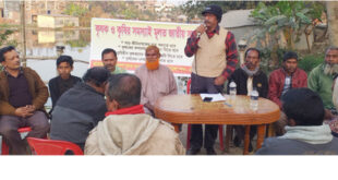 ॥ পাংশা (রাজবাড়ী) প্রতিনিধি ॥ রাজবাড়ী জেলার পাংশা রেলওয়ে স্টেশন চত্বরে রবিবার (৯ফেব্রুয়ারী) বিকালে বাংলাদেশ কৃষক সংগ্রাম সমিতির সভা অনুষ্ঠিত হয়েছে। শহীদ কমরেড তারু, রাজা ও খাইরুল ইসলামের ৪৯তম মৃত্যুবার্ষিকী পালন উপলক্ষে এ সভার আয়োজন করা হয়। সভা শেষে বাংলাদেশ কৃষক সংগ্রাম সমিতির সাংগঠনিক কর্মকান্ড জোরদার করণের লক্ষ্যে বাংলাদেশ কৃষক …
