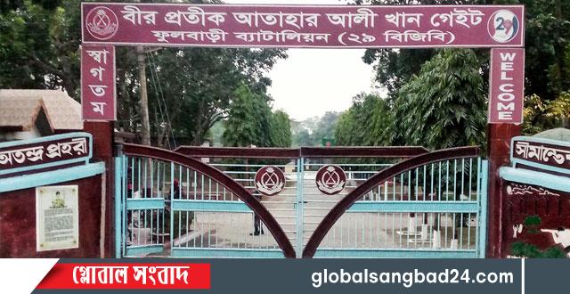 র্ডার গার্ড বাংলাদেশ বিজিবি’র ফুলবাড়ী ব্যাটালিয়ন ২৯ বিজিবি কর্তৃক সীমান্তে চোরাচালান প্রতিরোধ অভিযান পরিচালনা করে গত এক বছরে ৩৬ জন চোরাকারবারী সহ ৬ কোটি ৬ লক্ষ ৩ হাজার ৩ শত ১৮ টাকা মূল্যমানের ভারতীয় নেশাজাতীয় মাদকদ্রব্য সহ বিভিন্ন চোরাচালান আটক করেছে।